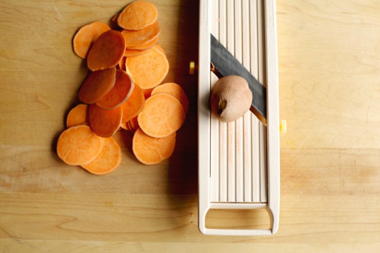 - 1-2 small sweet potatoes, washed and thinly sliced