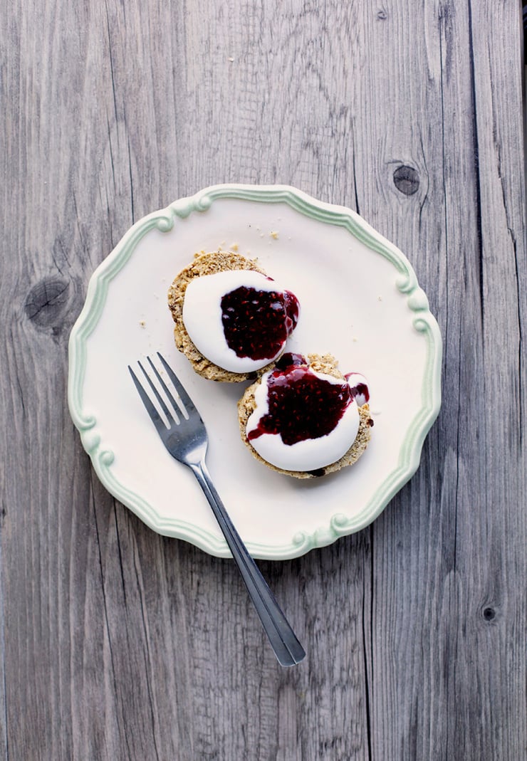 Though I’ve never been much of a coffee drinker, I do love a good coffee & espresso flecked baked good. These look like something I could get behind for breakfast. I love that you topped them with the coconut cream and raspberry jam. YUM!!
