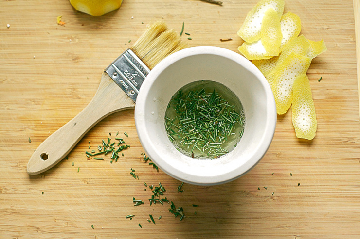 - Combine the rosemary, lemon juice and oil in a small bowl. Set aside.