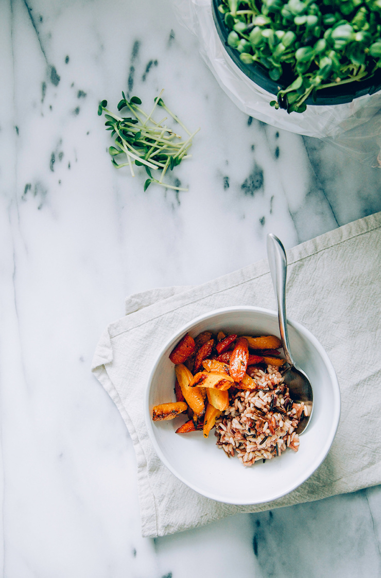 So we have roots, sprouts, brown rice, and healing spices. All the makings of a warming and quiet winter’s lunch. Hope you’re all getting some of those these days. xo