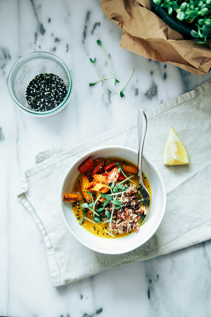This looks like the kind of meal I would make, and then keep on infinite rotation until my skin was orange from beta-carotene and my spoons yellow from turmeric. But, I’m totally okay with that, because someone told me it’s the cool thing nowadays. Shoots are a bit new to me, but I’m sure they’d find a cozy place among the goodness and warmth.
