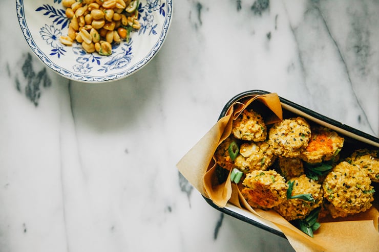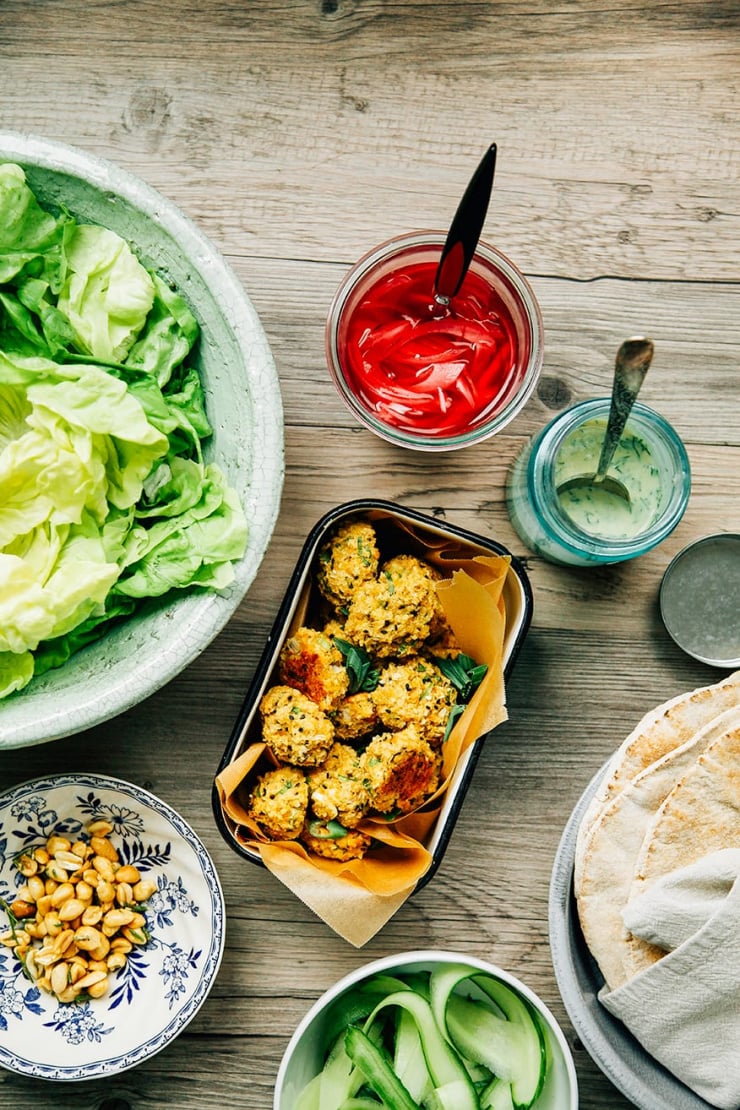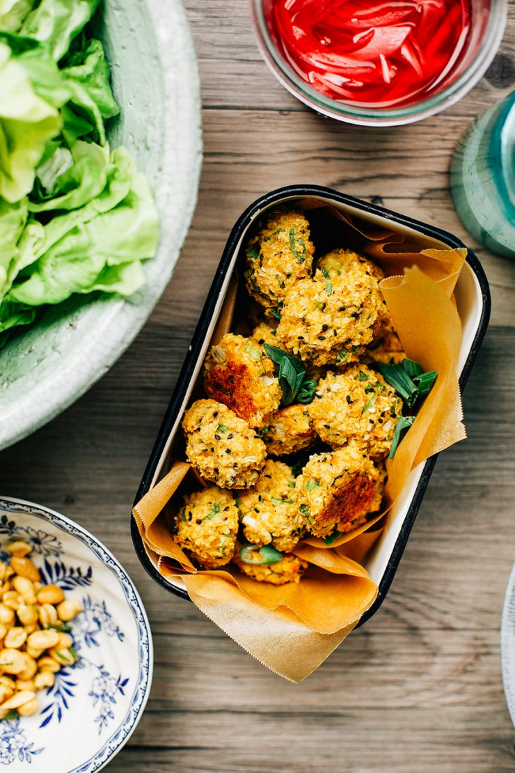 gorgeous bowl that you’re mixing that falafel mush in, miss! so pretty. I am a baked falafel fan myself, but admit they hinge upon their sauce and fixins. Love the idea of the peanuts, must try that.
