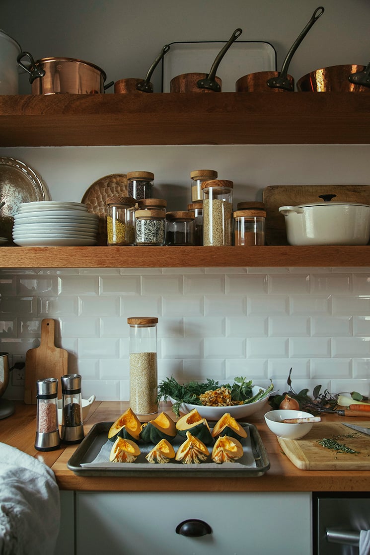 Your kitchen is just dreamy girlfriend, that backsplash and those shelves are so good! I burned myself out on squash early in the season, but this looks like a good foray back into the sqaush loving rotation :)