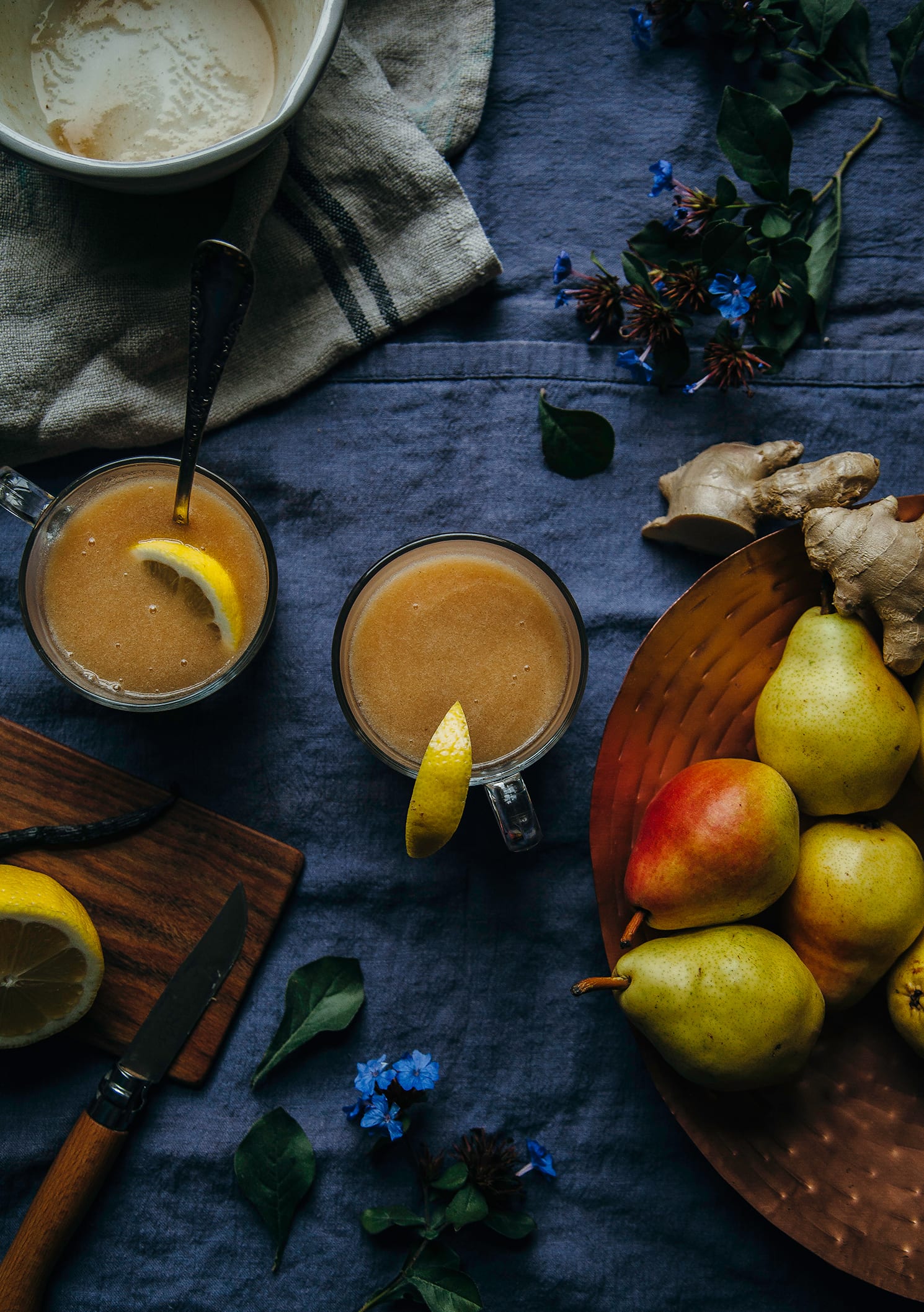 Mmm! This looks so cozy and enticing. I actually made something super similar last night, but without the pairs and vanilla. The blended lemon/ginger result is so soothing and frothy, almost creamy like you said. Definitely putting pairs on my shopping list so I can try this out <3