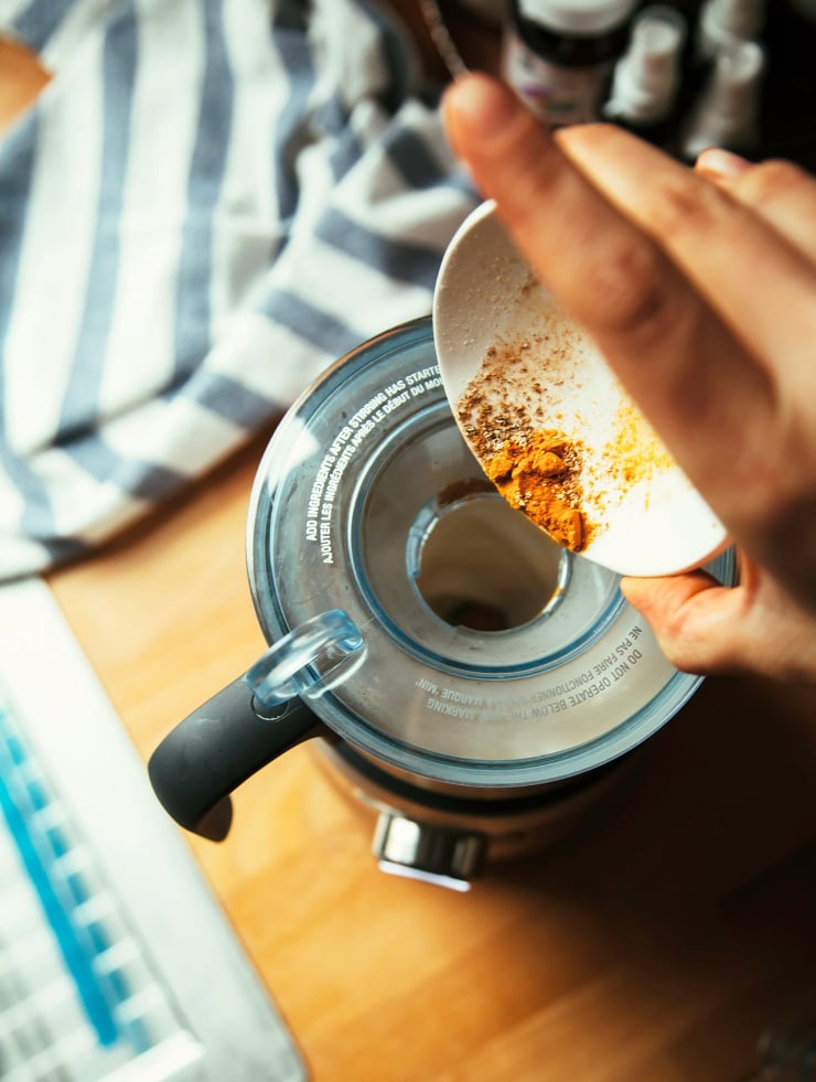 - If you have a high speed blender, you can simply combine the following in the blender pitcher on high for the same effect: 12oz hot coffee, 3 tablespoons of raw cashews, all of the below listed spices, vanilla, and sweetener. Blend for a minute and done!