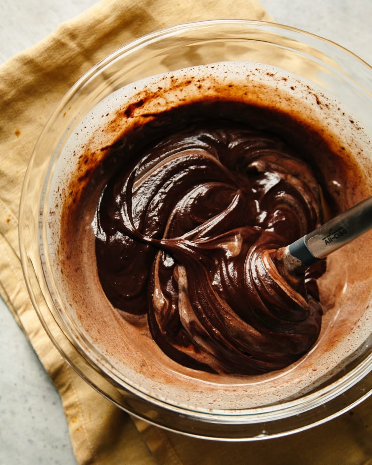 - Make the ganache. Place the chocolate chips and peppermint extract in a medium bowl. Place the coconut milk in a small saucepan on the stove over medium-high heat. Once the coconut milk starts bubbling and simmering, pour it over the chocolate chips. Let this mixture sit for a minute before stirring with a spatula until you have a smooth, fully mixed, and glossy ganache.