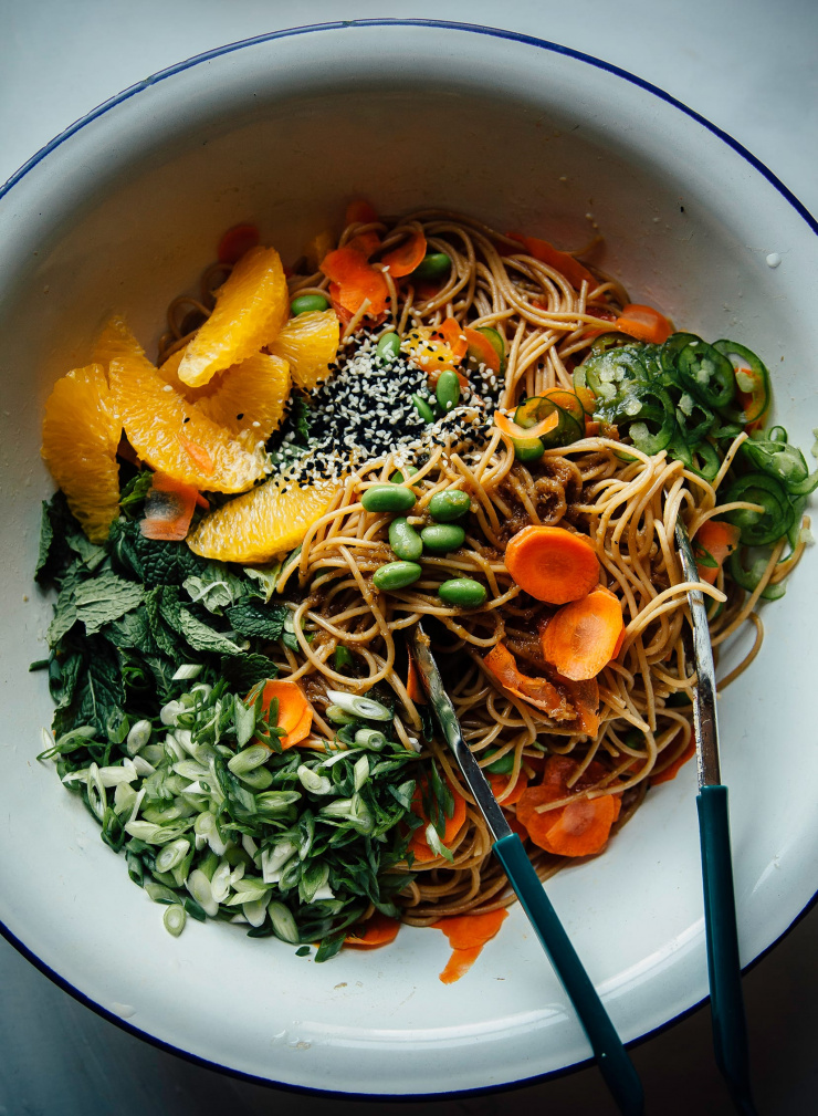 Cold Ginger Noodle Salad with Mint, Edamame & Orange