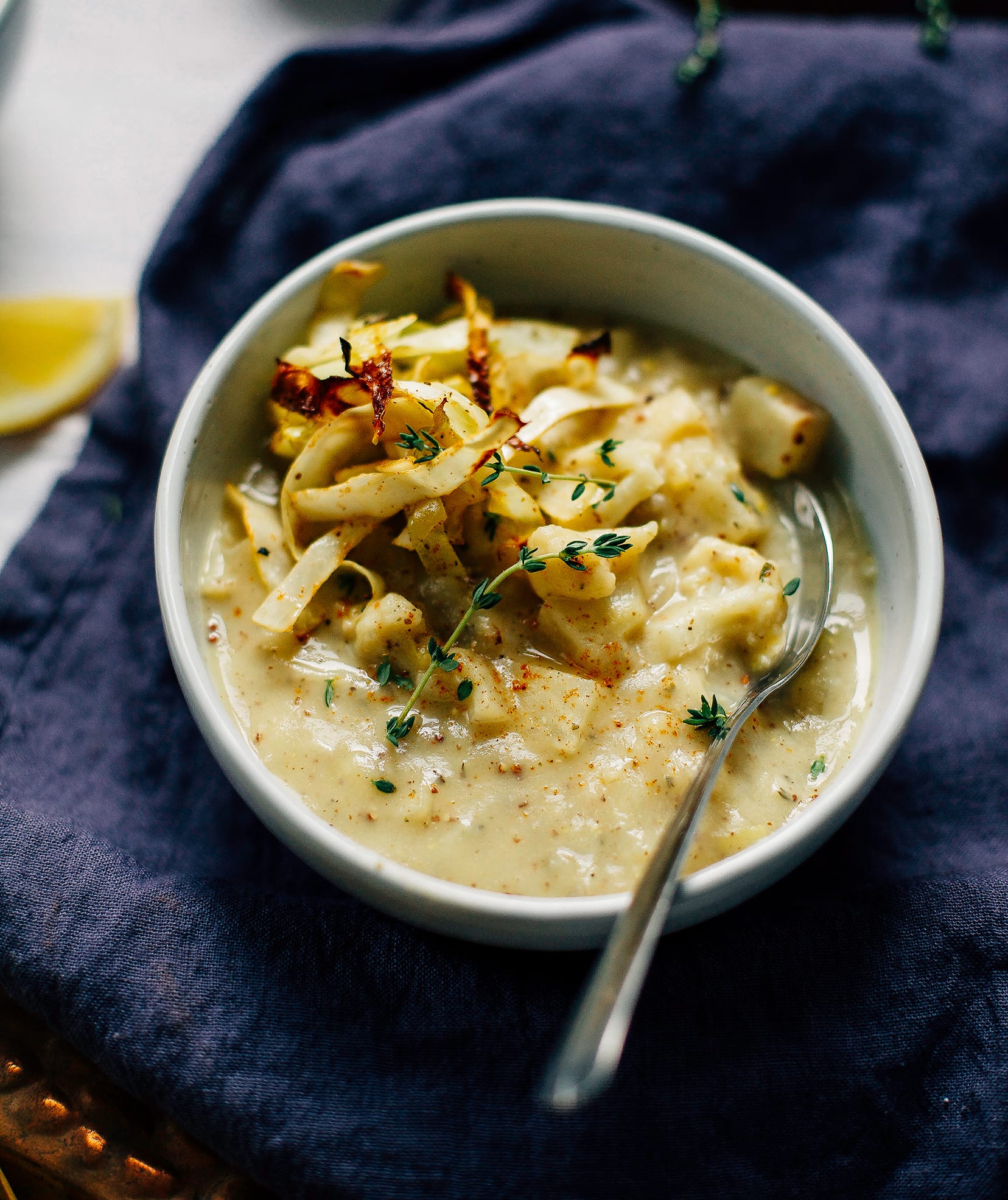 6. DREAMY WINTER VEGETABLE CHOWDER WITH MUSTARD & LEMON: All the storage-friendly vegetables you can handle with lots of flavour from mustard, lemon, and Old Bay seasoning. Super creamy and delicious with a crust of bread.