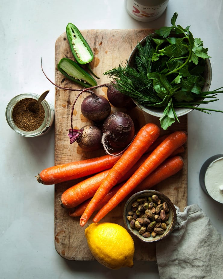 - I used carrots and beets, but any mixture of root vegetables you like is good. You’ll need 1 ½ pounds.