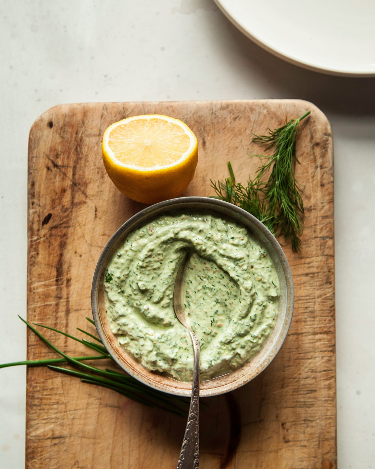 Our recipe today has been a frequent make during these times at home. It’s still so cold here and Spring’s asparagus and radishes feel so far away. We made a tray of grounding roasted roots and then plated them up with a tangy, herb-y, slightly spicy, very creamy vegan yogurt sauce. The grounding roasted roots are tender, slightly sweet and caramelized and the sauce cuts through with brightness. It’s comfy and cozy but also fresh, nourishing and suggestive of the Spring flavours to come. I’ve been making variations of Sara’s quick green sauce recipe and this yogurt sauce is an extension of it. It’s a perfect landing spot for slightly wilting herbs or maybe bumper crops popping up on your garden (if you’re lucky enough to be in a warmer part of the world right now.