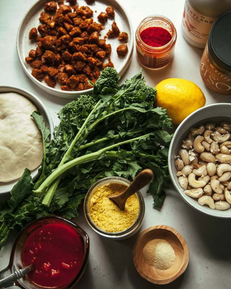 So delicious. A staple dinner in our household and a favorite of our 3 boys. I can never get a broccoli rabe so I use steamed broccoli florets instead. I have also used lightly steamed curly kale before. The cashew ricotta is so flavorful. 10/10