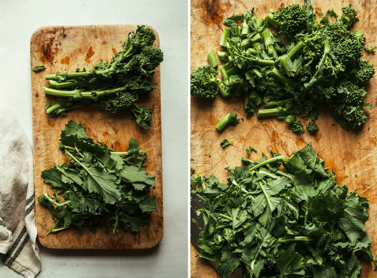 - ½ bunch broccoli rabe, leaves separated from stalks
