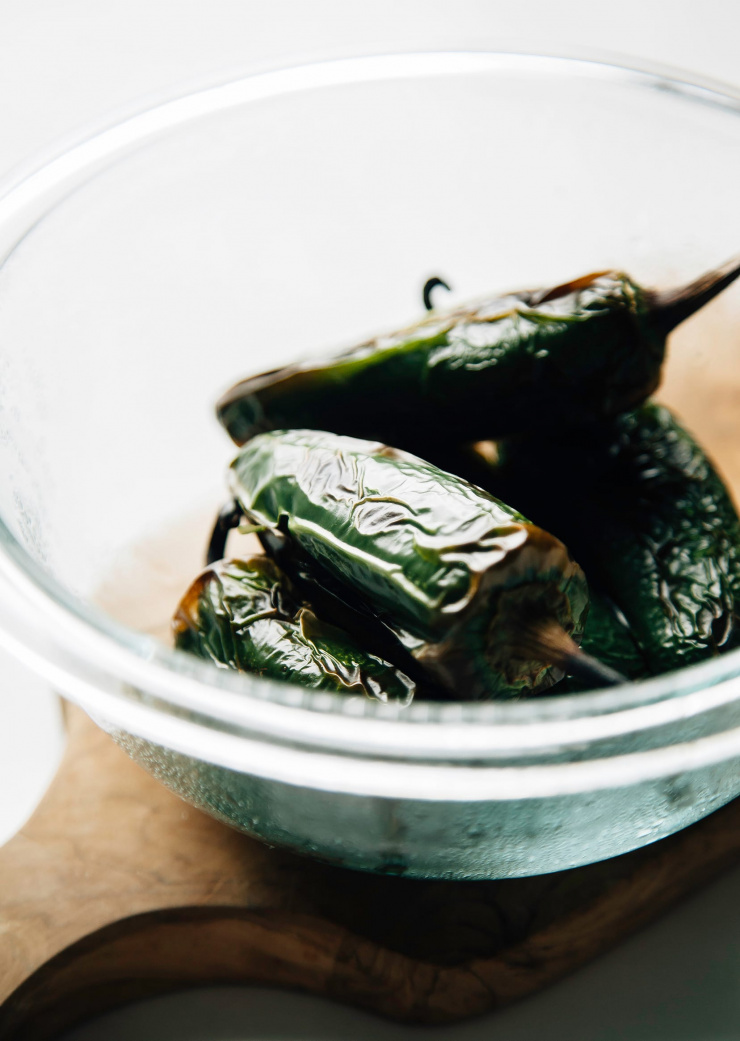 - Transfer the charred jalapeños to a small bowl and cover. Let the jalapeños steam for 5 minutes.