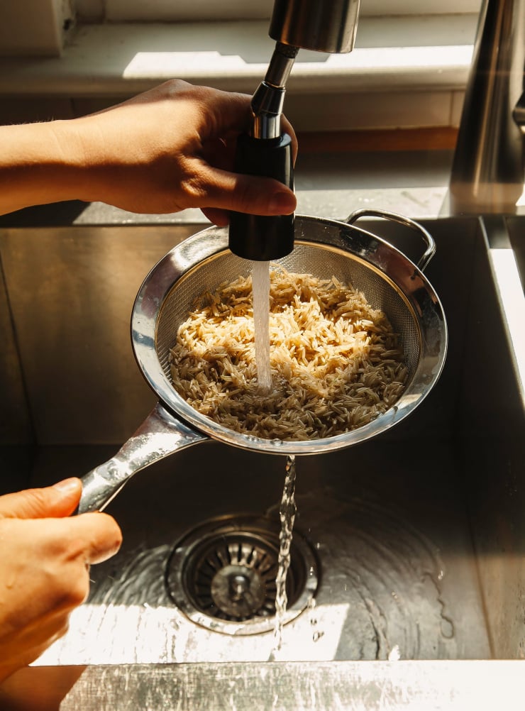 - Make the coconut rice. In a medium saucepan over medium-high heat, combine the coconut milk, water, coconut sugar, and salt. Bring the mixture to a boil, stirring a few times to dissolve the sugar. Add the rinsed brown basmati rice to the saucepan and stir. Bring the coconut rice up to a boil, lower the heat to a simmer, and then cover the saucepan with a lid. Simmer until almost all of the liquid is absorbed, about 40 minutes. Turn off the heat.