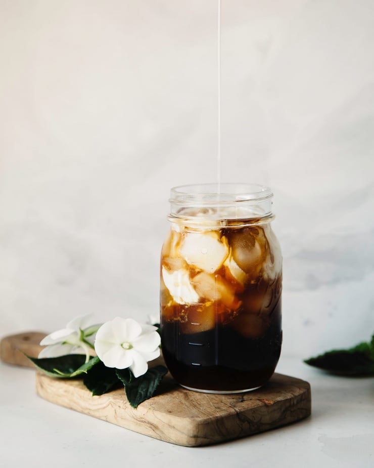 Double coconut cold brew features both coconut water and full fat coconut milk. It's creamy, slightly sweet, and incredibly refreshing.