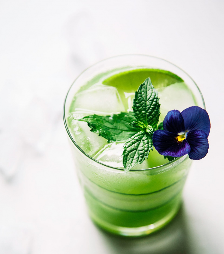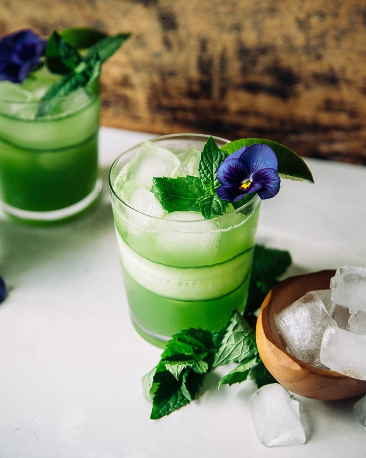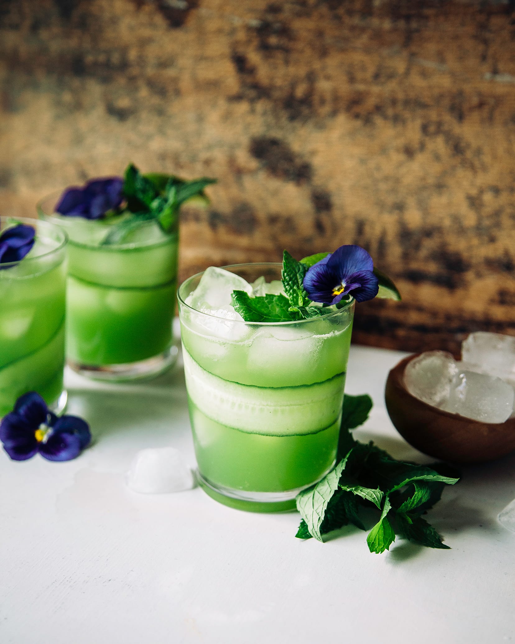 - Pour the resulting minty cucumber limeade over lots of ice. Garnish with a mint sprig, extra cucumber, or a lime wedge.