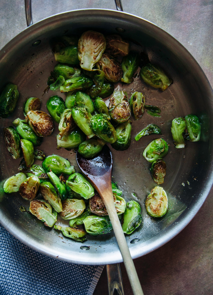 - If you don’t have an oven-safe sauté pan, you can roast the brussels sprouts on a baking sheet. I would still do the garlic sautéeing step to infuse the oil with the flavour before tossing the sprouts in it, but you can cut the amount of oil back to 1-2 tablespoons if you’re doing the whole cook in the oven.