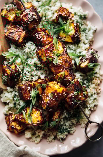 Sweet and Spicy Grilled Tofu and Pineapple with Herbed Cauliflower Rice