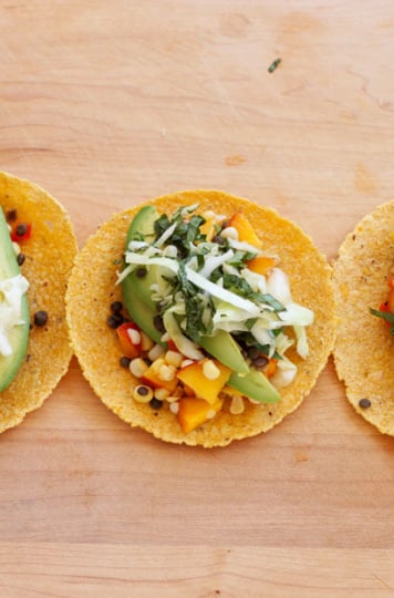 Peachy Corn Tacos with Lentils & Basil Slaw