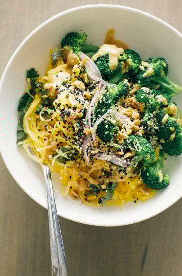 Spaghetti Squash Noodle Bowl with Lime Peanut Sauce