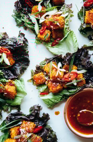 Crispy Coconut Tofu Lettuce Wraps with Sweet Chili Sauce