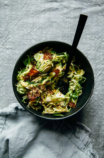 Citrus Brussels Sprouts Slaw with Rice Paper “Bacon” Bits